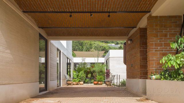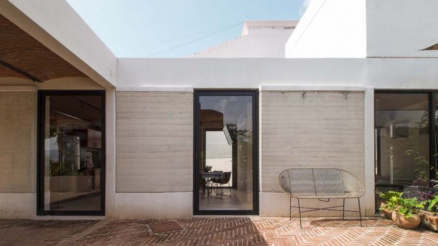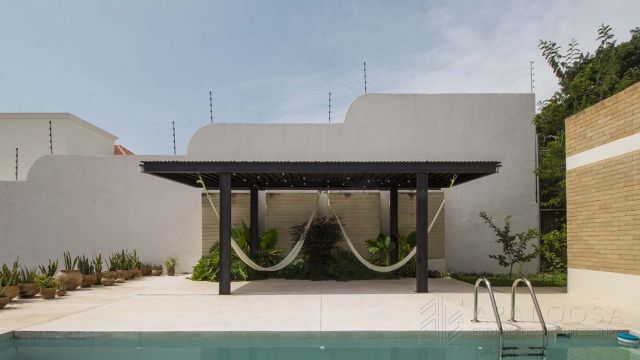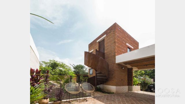 La encomienda fue muy clara y los recursos limitados; el programa básico se adaptaba perfectamente al sitio, aunque el usuario no contaba con una ventaja desde su predio y el entorno mismo. El poder del emplazamiento. Desde el sembrado del proyecto ganamos ventilación, iluminación y perspectivas naturales únicas. Aunado a esto potencializamos la propuesta a partir de una separación de elementos; como si abriéramos a una casa-núcleo en partes y cada área libre tuviera una razón perceptiva y bioclimática. El carácter también fue influido en este procedimiento, perdiendo la plástica de vivienda “convencional”, a simples cubos unidos únicamente por bóvedas para su transición. Las estrategias bioclimáticas pasivas fueron elementales desde la construcción; con muros armados del suelo extraído del mismo sitio, compactados en capas de 10 cm y con 40 cm de espesor; a la par y en otros módulos, se erigieron muros de ladrillo en tejido 21 (o de 21 cm de espesor), así como las cubiertas de bóvedas en ladrillo, con relleno aislante para nivelación y compresión. Al contar con mayor superficie libre a diferencia de la construida, el proyecto de paisajismo se implementó a la par del proyecto de la vivienda; logrando caminos sinuosos entre junglas endémicas, para llegar hasta el área de esparcimiento (alberca y terraza).